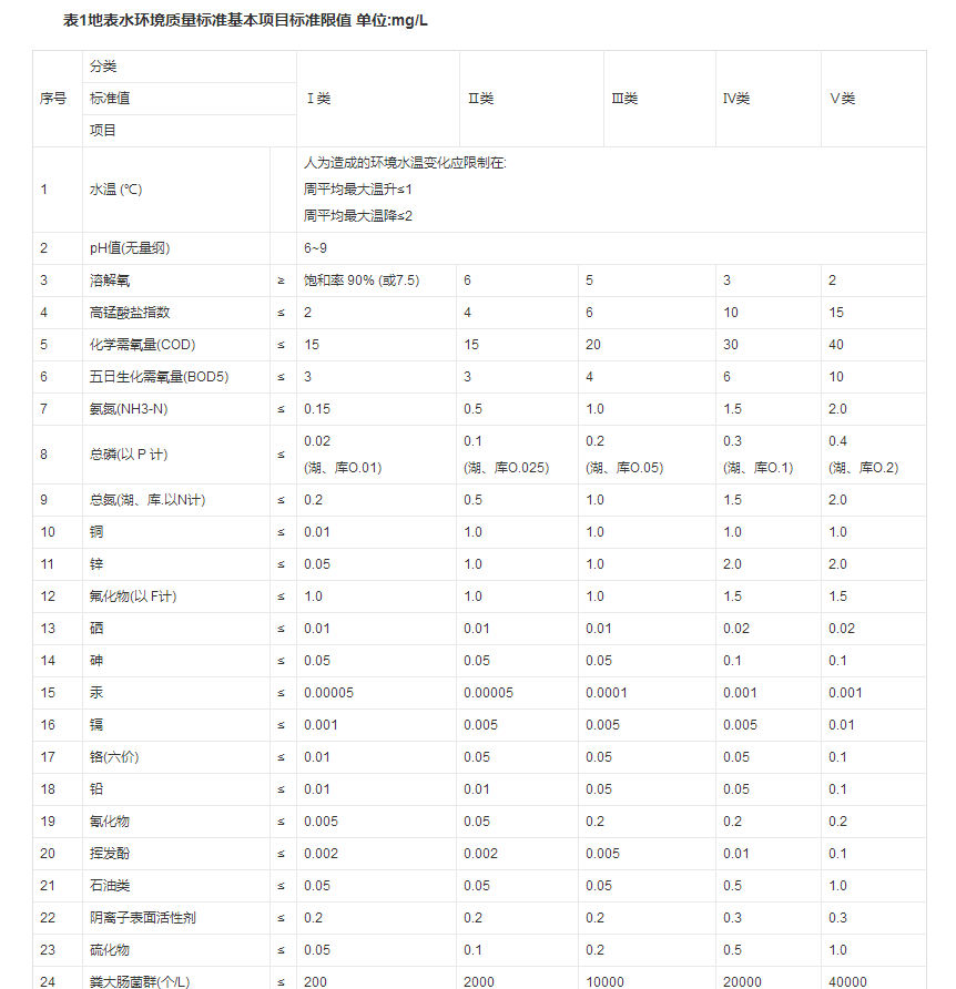 地表水環(huán)境質(zhì)量標(biāo)準(zhǔn)基本項(xiàng)目標(biāo)準(zhǔn)限值見表1。